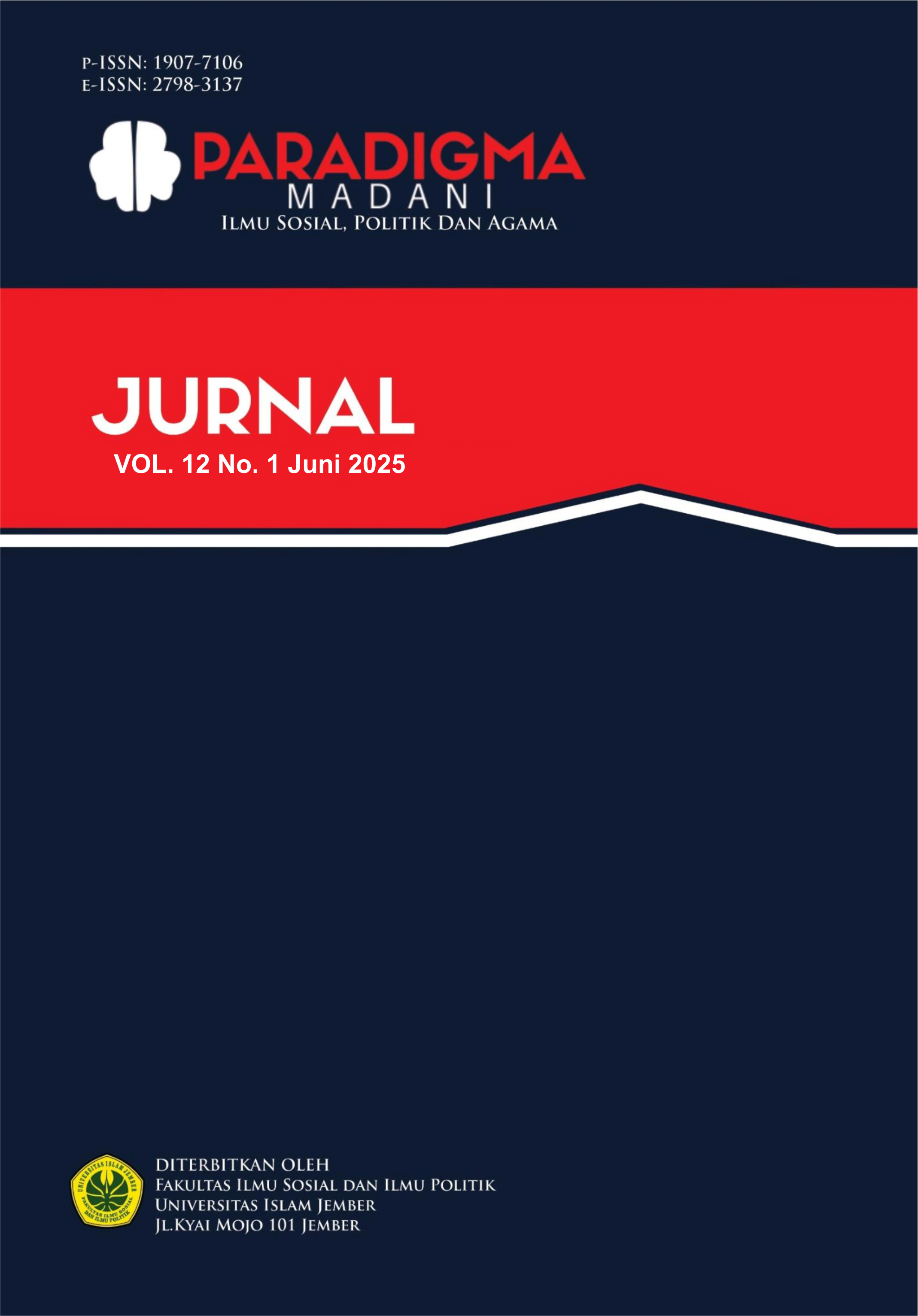 Paradigma Madani : Ilmu Sosial, Politik dan Agama adalah Jurnal Fakultas Ilmu Sosial dan Ilmu Politik Universitas Islam Jember. terbit dua kali dalam setahun (Juni dan Nopember). Penerbit adalah Fakultas Ilmu Sosial dan Ilmu Politik Universitas Islam Jember. Paradigma Madani : Ilmu Sosial, Politik dan Agama konsentrasi pada kajian Administrasi Publik dan Ilmu Komunikasi dan Agama.